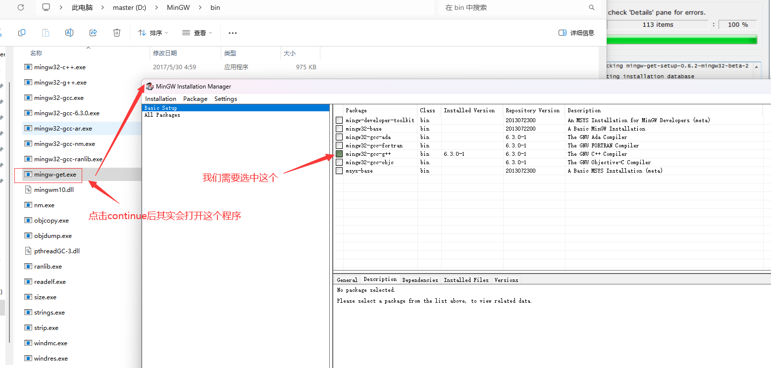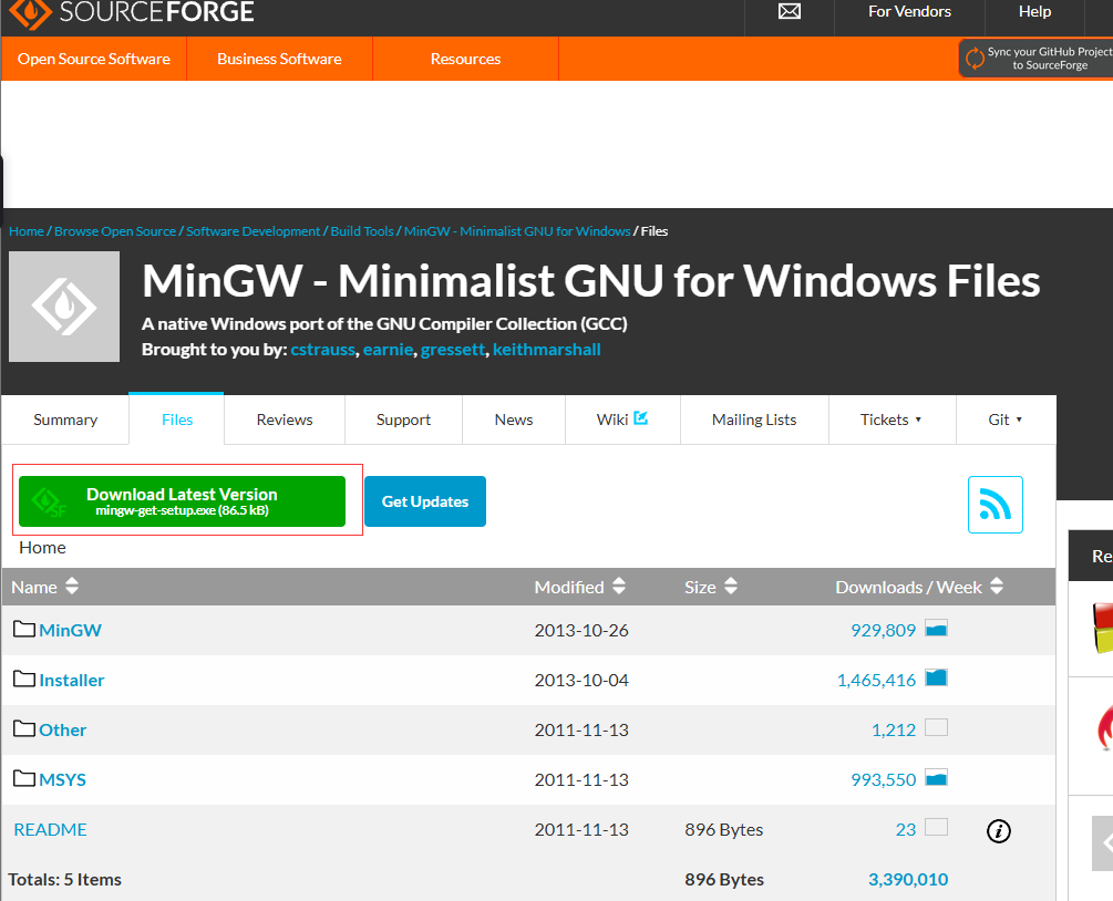MinGW下载 直接点击红色区域的按钮下载即可