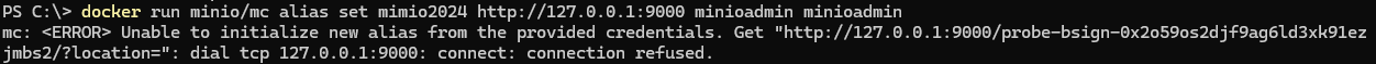 docker run --rm --network host -v F:\docker_volumes\mc-config:/root/.mc minio/mc alias set target http://127.0.0.1:9001 minioadmin minioadmin查看别名设置是否成功
